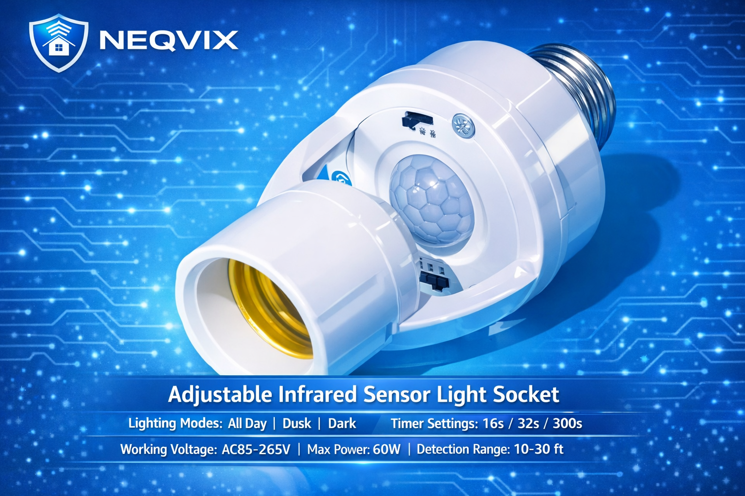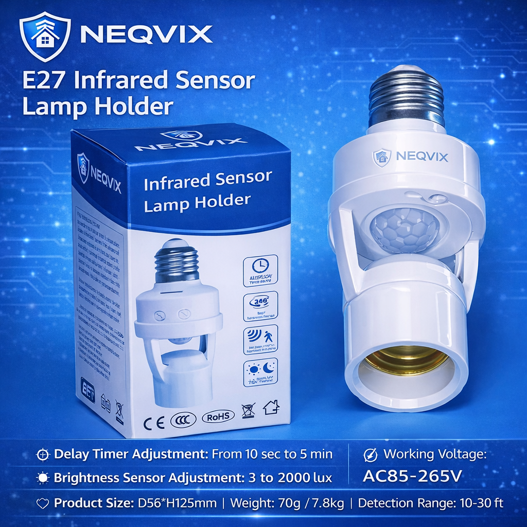 NEQVIX Motion Sensor Lamp Holder একটি স্মার্ট ইনফ্রারেড সেন্সর লাইট হোল্ডার যা মানুষের উপস্থিতি বুঝে স্বয়ংক্রিয়ভাবে লাইট অন এবং অফ করে।