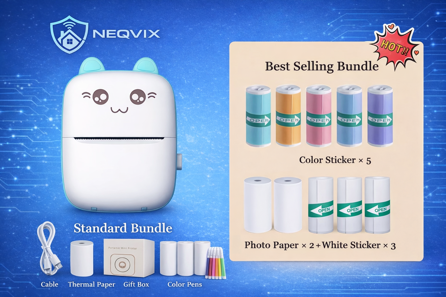 NEQVIX Mini Portable Printer Combo